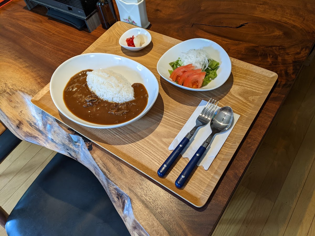 The café is celebrated not only for its ambiance but also for its delectable menu, which includes the highly praised Shiraoi Beef Curry. This dish features a generously portioned, tender beef simmered in a mild, rich curry sauce, ideal for all ages. Accompaniments like crispy fresh salad and pickled vegetables elevate the meal further, offering a symphony of flavors. As you savor this culinary delight, take a moment to indulge in their exquisite selection of desserts — the coffee and pudding here come highly recommended and are the perfect finish to your meal.